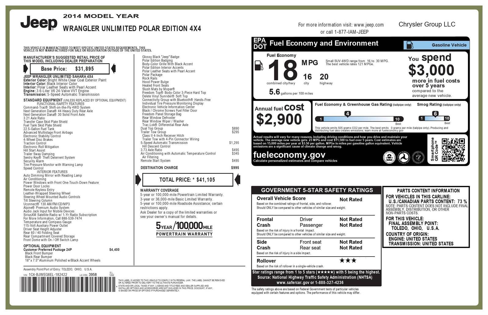 2014 Jeep Wrangler Unlimited Polar Edition